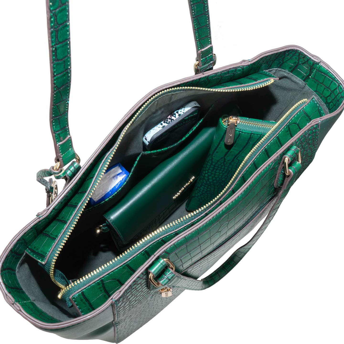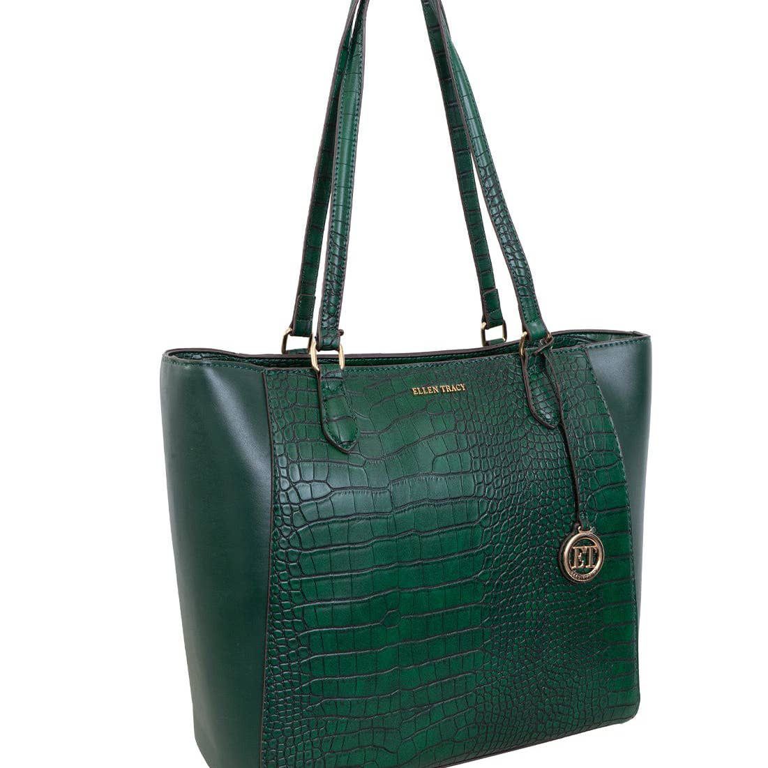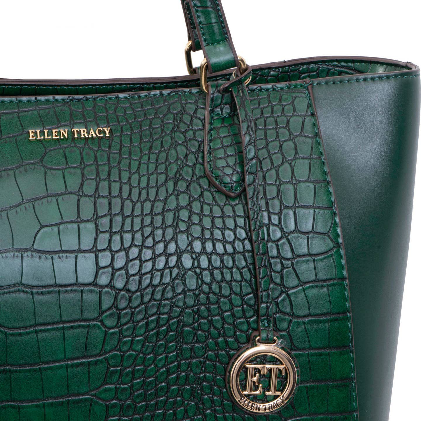 Ellen Tracy emerald croco tote bag