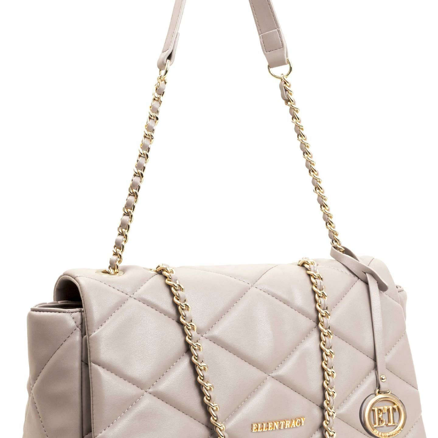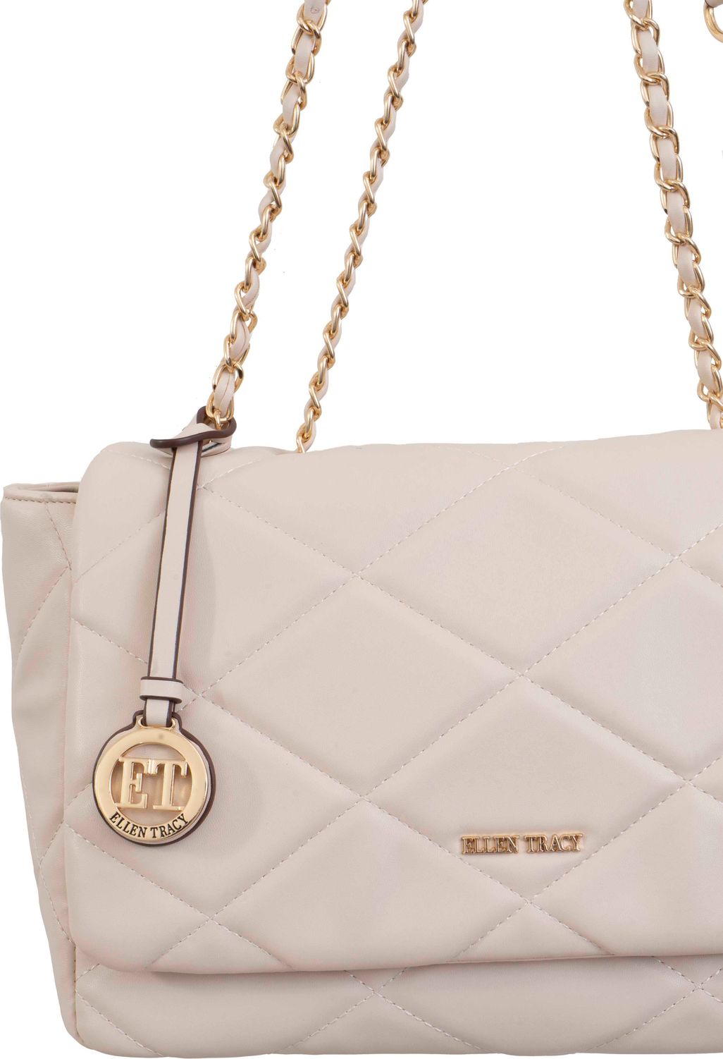 Ellen Tracy smooth diamond quilted flap bag -ivory